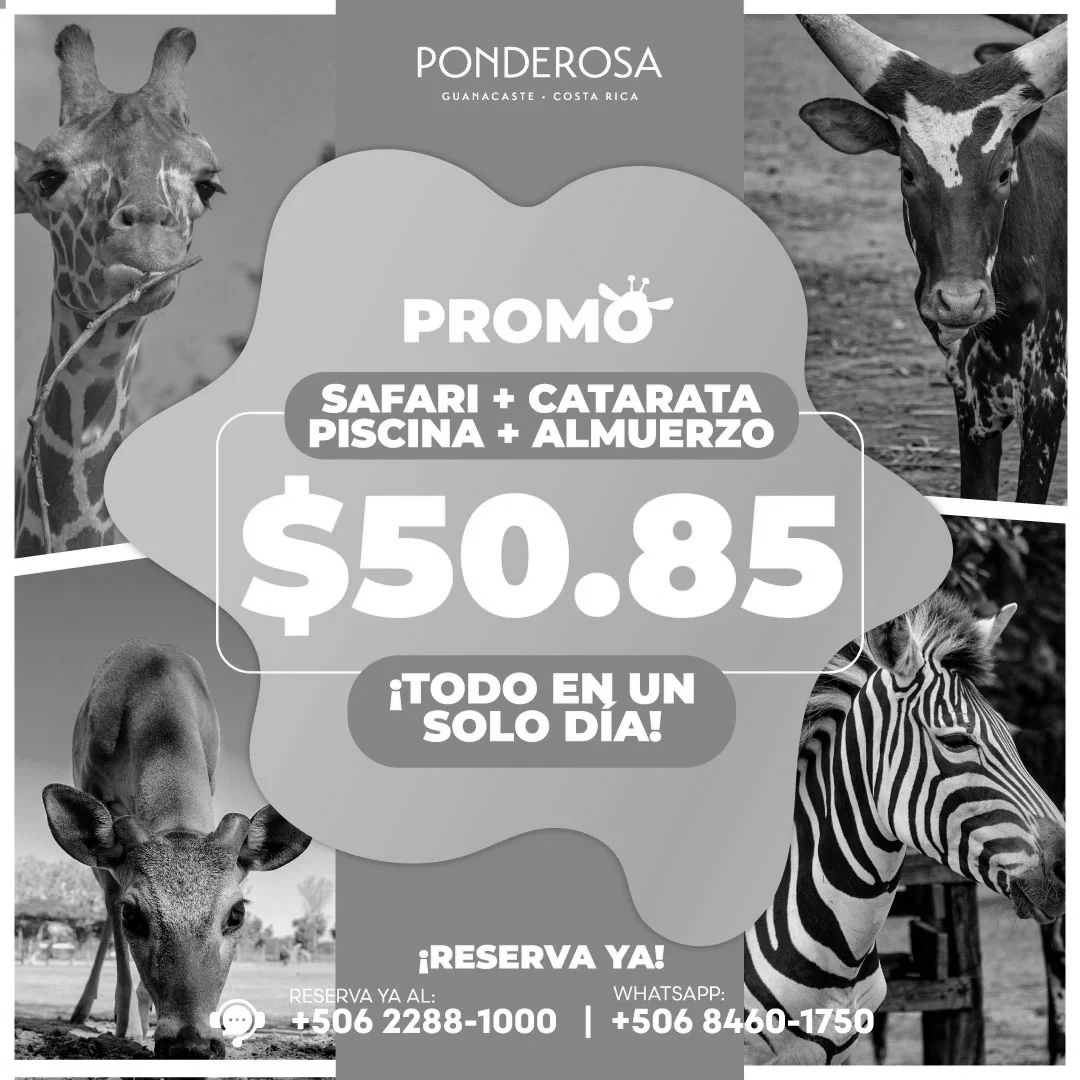 Ponderosa awaits you with an adventure-filled Day Pass: safari, canopy, tubing, and waterfall. Flexible booking